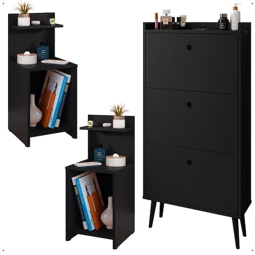 Kit Quarto 2 Mesas Cabeceira Mesinha Fantasy Lateral Cama Sapateira Vertical Dark Organizadora Calçados Unissex Preto - Lojas RPM