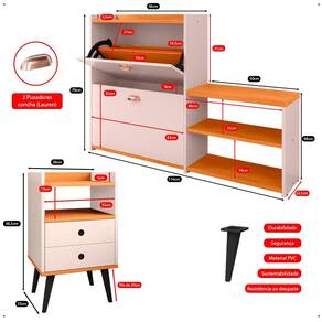 Praticidade e sofisticação para o seu quarto! A Mesa de Cabeceira Dream combina design clean com funcionalidade, oferecendo duas gavetas amplas, nicho e um tampo espaçoso para acomodar objetos decorativos e itens de uso diário. Já a Sapateira Milano une elegância e organização, com capacidade para até 21 pares de calçados, duas gavetas basculantes, banco lateral e prateleira para armazenamento extra.