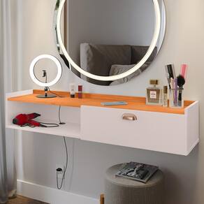 A Penteadeira Suspensa Classic traz elegância com seu design moderno, nicho decorativo e porta com amplo espaço interno.