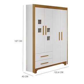 Composto por 4 portas (sendo 2 com detalhe em acrílico), 2 gavetas, 4 prateleiras internas, 1 cabideiro e 1 calceiro. Excelente divisão interna e estrutura firme com acabamento Ultravioleta atóxico acetinado.