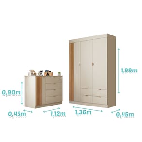 Kit Quarto Infantil Bebê Ayla Cômoda 4 Gavetas Guarda Roupa 3 Portas 4 Gavetas -Phoenix Baby