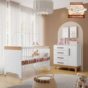 Crie um ambiente seguro, organizado e cheio de estilo para o bebê com o Kit Quarto Infantil Doçura. Além do berço e da cômoda, esta versão inclui um colchão padrão americano (130x70x10 cm), proporcionando mais conforto e proteção ao bebê:
