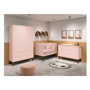 O Kit Quarto Infantil Contém: 1 Berço Mini Cama Square - Rosa 1 Cômoda Square - Rosa 1 Guarda-roupa Square - Rosa