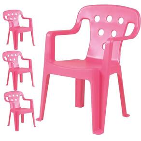 Cadeira Plástica Tipo Poltrona Kids Rosa Com 4 Unidades MOR