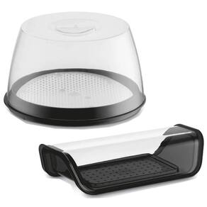 Kit Queijeira e Manteigueira Uz Preto com Tampa Acrílica Porta Frios Mesa Posta.