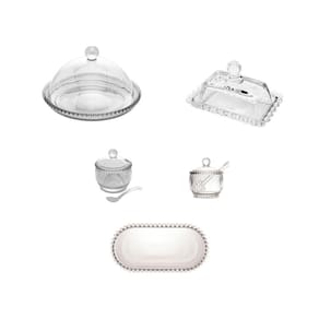 Kit Queijeira + Manteigueira + Açucareiro + Meleira + Travessa Pearl Wolff