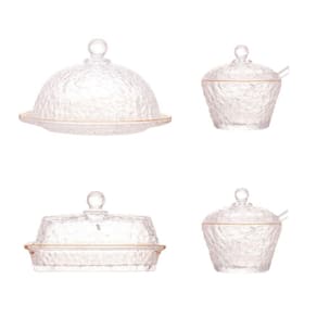 Kit Queijeira + Manteigueira + Meleira + Açucareiro de Cristal Martelado com Fio de Ouro Petra Lyor - Na sua casa!