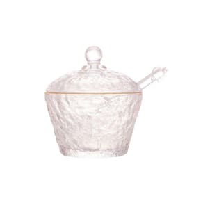 Kit Queijeira + Manteigueira + Meleira + Açucareiro de Cristal Martelado com Fio de Ouro Petra Lyor - Itens Inclusos01 Queijeira (Diâmetro x Altura): 19,5 x 13 cm.