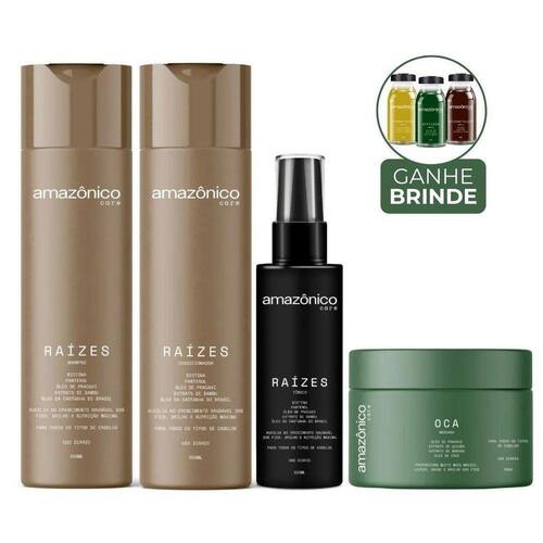 Descrição: O Kit Raízes da Amazônico Care é a solução completa para cabelos que precisam de cuidados especiais. Este kit inclui um Shampoo de 300ml, um Condicionador de 300ml e um Spray Tônico de 100ml, todos da linha Raízes. Formulado com poderosos ativos, como biotina, pantenol, óleo de pracaxi, extrato de bambu e óleo da castanha do Brasil, este kit proporciona o tratamento completo para fortalecer, nutrir e estimular o crescimento capilar. Indicação: O Kit Raízes da Amazônico Care é indicado para todos os tipos de cabelo que necessitam de fortalecimento, nutrição e estímulo ao crescimento. Se você enfrenta problemas como cabelos enfraquecidos, quebradiços ou queda, este kit é a escolha perfeita para revitalizar seus fios e couro cabeludo. Tecnologia: Os produtos deste kit são enriquecidos com uma combinação de ativos de alta qualidade. A biotina fortalece os fios, o pantenol hidrata profundamente, o óleo de pracaxi nutre, o extrato de bambu estimula o crescimento e o óleo da castanha do Brasil promove um brilho deslumbrante. Essa fórmula única atua em conjunto para fornecer um tratamento completo. Benefícios: - Fortalece os cabelos - Nutre profundamente - Estimula o crescimento - Reduz a queda - Brilho e suavidade - Tratamento completo em um único kit Modo de Uso: 1. Shampoo Raízes: Aplique nos cabelos molhados, massageie suavemente e enxágue. Repita se necessário. 2. Condicionador Raízes: Após o shampoo, aplique nos cabelos úmidos, deixe agir por alguns minutos e enxágue. 3. Spray Tônico Raízes: Aplique diretamente no couro cabeludo, preferencialmente à noite, com os cabelos limpos. Massageie suavemente para estimular a absorção. Não enxágue. Resultado: Com o uso contínuo deste kit, seus cabelos ficarão visivelmente mais fortes, nutridos e com um brilho deslumbrante. A queda de cabelo será reduzida, e o crescimento capilar será estimulado. Desfrute de cabelos saudáveis e radiantes. Itens Inclusos: 1 Shampoo 300ml - Raízes Amazônico Care 1 Condicionador 300ml - Raízes Amazônico Care 1 Spray Tônico 100ml - Raízes Amazônico Care Precauções: Evite o contato com os olhos. Em caso de contato, enxágue abundantemente com água. Mantenha fora do alcance de crianças. Uso externo. Em caso de irritação, suspenda o uso. Guarde em local fresco e ao abrigo da luz solar direta.