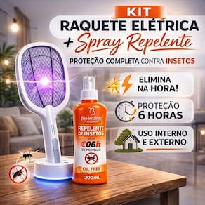 O Kit Raquete Elétrica com Base Luminosa + Spray Repelente 200ml combina tecnologia e proteção prolongada. Enquanto a raquete elimina insetos instantaneamente com descarga elétrica, o spray oferece até 6 horas de proteção contra mosquitos, garantindo mais tranquilidade para você e sua família. Ideal para uso interno e externo.