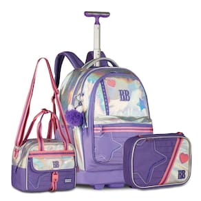 Um conjunto sofisticado e funcional para acompanhar a rotina escolar. A mochila RB27016, em PVC holográfico, traz design único com bordado de estrela, patches frontais, divisória para notebook e tablet, dois compartimentos frontais, bolsos laterais e chaveiro triplo exclusivo, além da cartela de adesivos Rebecca Bonbon. Pode ser Utilizado no carrinho ou como mochila de costas, com proteção para rodinhas e alças acolchoadas. Dimensões aproximadas: 48x35x19cm. A lancheira RB27018, também em PVC holográfico, é prática e versátil, com amplo espaço interno, revestimento térmico, bolso frontal extra e três opções de uso: alça de mão, alça de ombro ou alça carona para acoplar na mochila. Dimensões aproximadas: 20x24x14cm. O estojo RB27019 completa o kit com organização total: possui 36 elásticos internos, compartimento extra com fechamento em zíper e capacidade para até 100 lápis ou canetas. Dimensões aproximadas: 22x14x6cm. Um kit completo, cheio de charme holográfico e praticidade para o dia a dia.