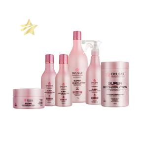 O kit para o profissional e sua cliente possui toda a linha de Recontrução e Cauterização da DYUSAR Cosmétcos. O Kit serve para que o profissional faça o procedimento e a cliente mantenha o tratamento em casa. Linha profissional: 1 Shampoo Hidratante Super 1L 1 Máscara Super Reconstrução com efeito teia 1Kg 1 Queratina/Cistina Super Reconstrução e Cauterização 500ml Linha cliente 1 Shampoo Hidratante Super 300mL 1 Máscara Super Reconstrução com efeito teia 300g 1 Condicionador Super Reconstrução DYUSAR 300mL Queratina Cistina é um restaurador capilar que confere uma revitalização intensiva da fibra capilar, reduzindo a porosidade hidratando e deixando os cabelos mais resistentes e saudáveis, indicada para cabelos frágeis, desvitalizados ou sensibilizados por processos químicos. modo de usar: Agite antes de usar. Após lavar os cabelos, retire o excesso umidade com a toalha e aplique o produto por toda extensão dos fios. Enluvar e deixar agir por aproximadamente por 10 minutos. Enxaguar. Pode ser como pré-escova. Máscara Super Reconstruction Dyusar Professional Hair com Efeito teia é uma máscara capilar que tem efeito teia, promove hidratação profunda, nutrição intensa, maleabilidade, brilho e sedosidade. modo de Usar: Após lavar os cabelos, aplique o produto sobre toda a extensão dos fios. Massageie e deixe agir por aproximadamente 7 minutos. enxágue bem. SHAMPOO HIDRATANTE SUPER RECONSTRUCTION limpa os fios, revitalizando e fortificando os cabelos. modo de usar: Aplique sobre os cabelos molhados, massageando bem até formar espuma. Enxágue e se necessário, repita a aplicação. CONDICIONADOR SUPER RECONSTRUÇÃO é um condicionador capilar que sela as cutículas, restaura e nutre os cabelos, dando penteabilidade e maciez aos cabelos. modo de usar: Após lavar os cabelos, aplique sobre toda extensão dos fios, massageando bem e deixe agir por 3 minutos, enxague bem. Marca: Não Informado