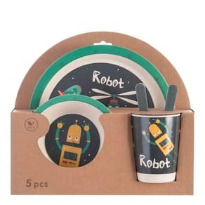Os pequenos vão adorar ter seus próprios utensílios com seu animal favorito. Em cores divertidas e desenhos animados, tornando a hora das refeições muito mais deliciosa. Pensados especialmente para as mãos pequenas das crianças. O Kit de Alimentação é feito inteiramente em fibra de bambu, ele não libera toxinas, super resistente, biodegradável e altamente durável. Facilmente lavável, pode ser levado a máquina de lavar louça e não pode ser levado ao forno ou micro-ondas.