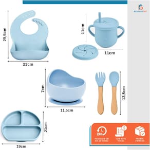 INFORMAÇÕES ADICIONAIS DIMENSÕES, PESO E CAPACIDADE Material: Silicone de qualidade alimentar Medidas babador: 29,5cm (altura) x 23cm (largura) Medidas copo: 11cm (altura) x 11cm (largura) Medidas talher: 13,5cm (altura) Medidas bowl: 7cm (altura) x 11,5cm (largura) Medidas prato: 21cm (altura) x 19cm (largura) Idade recomendada: +6 meses Marca: Baby Style Ref.: 5959001