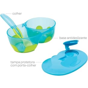O Kit refeição com Divisória da Buba foi desenvolvido para facilitar o momento da alimentação, suas divisórias permitem que a mamãe coloque dois tipos de alimentos. Possui tampa que pode ajudar na retenção da temperatura e/ou armazenagem do alimento e base com material antiderrapante. Seu design inovador, acondiciona a colher com ponta macia para uma melhor higiene. Livre de BPA e ftalatos, é também uma ótima opção para levar a comidinha do bebê a passeios ou viagens. A linha de alimentação da Buba traz itens práticos que facilitam a vida das mães e acompanham as diversas fases da criança contribuindo para um crescimento saudável.