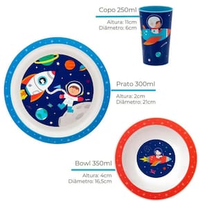 Contém: - 1- Prato raso - 1- Bowl - 1- Copo