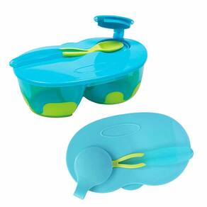 Kit Refeição Infantil com Divisória - Bowl e Colher - 320ml - Azul - Buba
