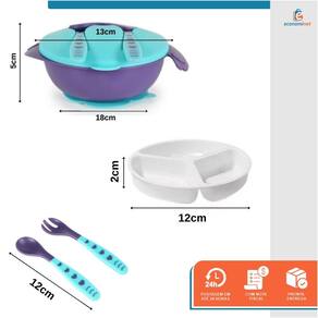 INFORMAÇÕES ADICIONAIS DIMENSÕES, PESO E CAPACIDADE Material: PP Medidas talher: 12cm (altura) Medidas bowl: 5cm (altura) x 18cm (largura) Medidas prato: 2cm (altura) x 12cm (largura) Idade recomendada: +6 meses Marca: Baby Style Ref.: 5959044