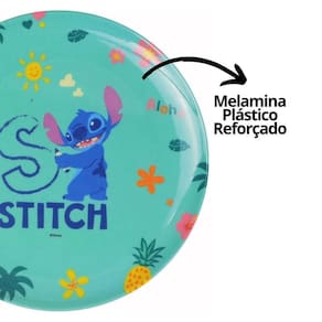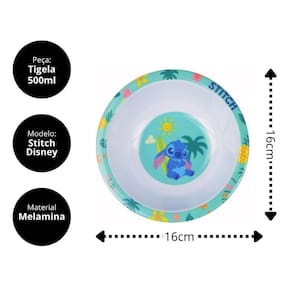 Jogo Refeição Infantil Melamina Stitch Disney 4 Peças