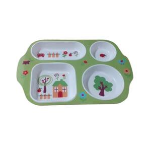 Ficha Técnica Medida Externa do Pratinho com 4 Divisões: 30 cm x 2,5 cm de altura Medida do Potinho: 11,5 cm x 4 cm de altura Medida do Copinho: 8 cm de altura e capacidade para 200 ml Medida do Garfinho: 14 cm Medida da Colher: 14 cm Material de Composição: Melamina