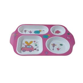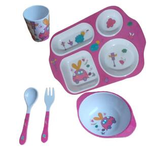 Kit Refeição Infantil Papinha Prato Copo Talheres Pote 5 Pçs Cor: Rosa Kit Refeição Infantil contendo Pratinho retangular com 4 divisões, Copinho, Potinho, Garfinho e Colher.