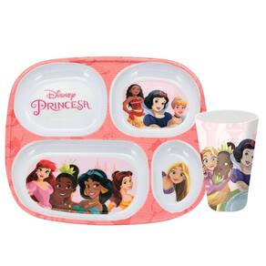 -Diversão na Mesa: Com um prato com divisórias e um copo 300ml, este conjunto oferece tudo o que seu pequeno precisa para desfrutar de uma refeição completa. Cada peça é decorada com as adoráveis Princesas Disney, como Cinderela, Bela, Ariel e muito mais, trazendo um sorriso ao rosto de qualquer criança.