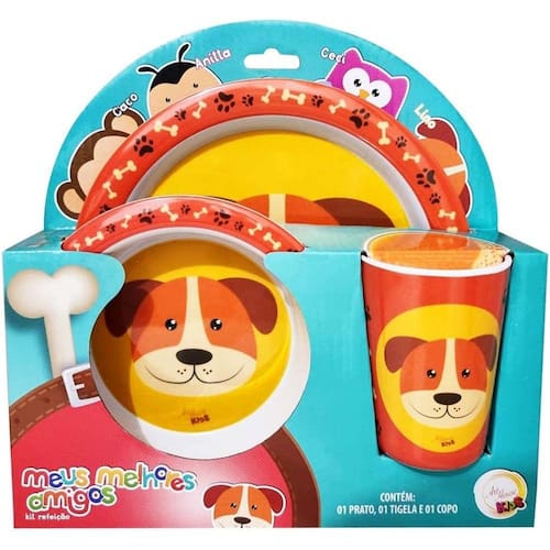 Agora a hora da refeição vai ficar ainda mais divertida com esse lindo Kit Refeição Infantil de Cachorro.