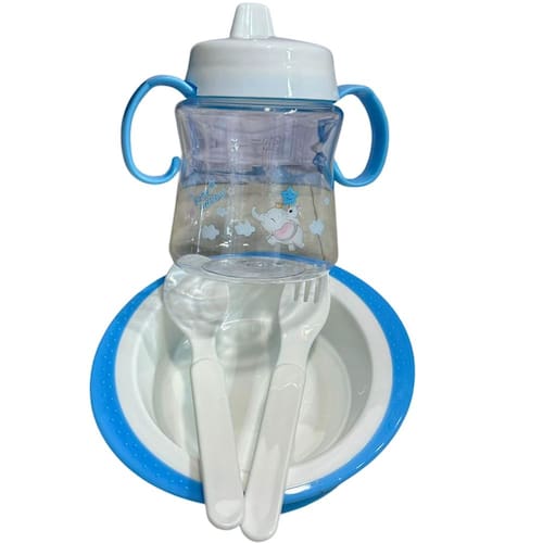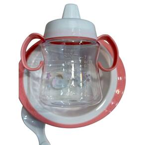 Este kit de refeição infantil é composto por quatro peças em plástico resistente e seguro, especialmente desenvolvido para o uso diário das crianças.