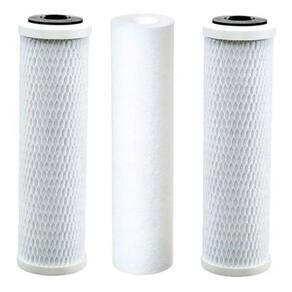 Kit refil filtro triplo fabricação cerveja pp + carbon block Cor: branco Kit triplo para fabricação de cerveja Contém 1 elemento filtrante 100% polipropileno fundido de alta performance melt blown + 2 elementos filtrante de carbon block bloco de carvão com grande eficiência em reter sólidos e odores e alta capacidade de absorção do cloro, ambos 9 3/4 5 micras. Elemento filtrante 100% polipropileno fundido de alta performance melt blown Isento de migração de fibras. Permite altas vazões com pequeno diferencial . Possui densidade graduada, que permite maior capacidade de retenção. Tamanho 9 3/4 x 2 1/2 5 micras Fluxo máximo de água 1000 l/h O cartucho sppf é ideal para água potável e de processo, gêneros alimentícios e bebidas, eletrônicos, químicos, petroquímicos, uso residencial podendo ser instalado no chuveiro, torneira da pia da cozinha, cavalete, caixa d'água, maquina de lavar roupa e uso comercial em geral. Elemento filtrante de carbon block bloco de carvão com grande eficiência em reter sólidos e odores e alta capacidade de absorção do cloro. Confeccionado a vácuo. Corpo e fechamento: polipropileno.gacheta: buna-n. Temp. Trabalho: até 60ºc. Grau de filtração: 5 micras. Pressão máxima de trabalho: até 7 kgf/cm. Fabricado 100% com carvão ativado. Retenção de cloro: 85% Fluxo máximo de água 300 litros/hora Marca: Não Informado Ean: 7892670759196