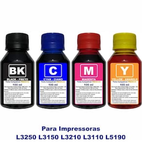 Kit com 400 ml de Tinta Premium Compatível com Refil 544 para Impressoras Epson L3150 L3250 L3110 L3210 L5190.