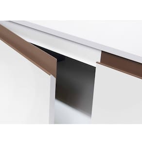 - Puxadores embutidos de alumínio e dobradiças metálicas