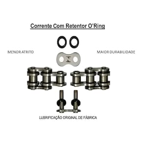 Contem: *1 Pinhão 13 Dentes *1 Coroa 40 Dentes com 4 furos com protetor *1 Corrente com Retentor 520uox110L elos emenda com trava