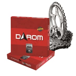 Com certificação do Inmetro, os kits de transmissão e as correntes Darom oferecem qualidade e durabilidade, com resistência acima do padrão exigido. Por um valor acessível, com Darom você atinge desempenho igual ao de peças originais da moto.