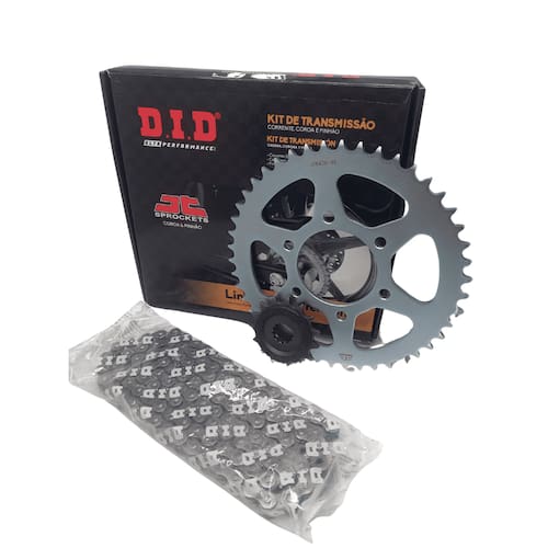 Os kits de transmissão Extra Premium foram desenvolvidos através de uma parceria entre o maior fabricantes de coroas e pinhões da atualidade, a inglesa JT, e correntes DID de alta performance.