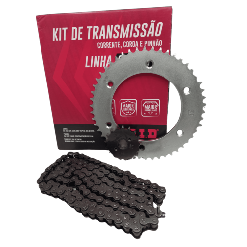 Embalagem: 01 Kit Transmissão Completo. ( Coroa, Pinhão e Corrente )