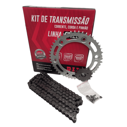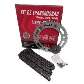 Embalagem: 01 Kit Transmissão Completo. ( Coroa, Pinhão e Corrente )
