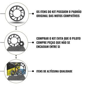 Além de evitar que você perca tempo e dinheiro com peças que não se encaixam perfeitamente entre si, os itens desse kit também possuem o padrão de fábrica das motos compatíveis, garantindo excelente custo-benefício.