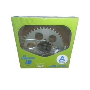 Embalagem: 01 Kit Transmissão Completo. ( Coroa, Pinhão e Corrente )