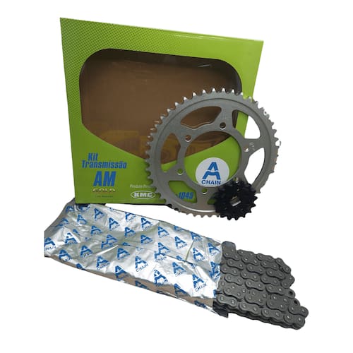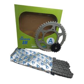 Embalagem: 01 Kit Transmissão Completo. ( Coroa, Pinhão e Corrente )