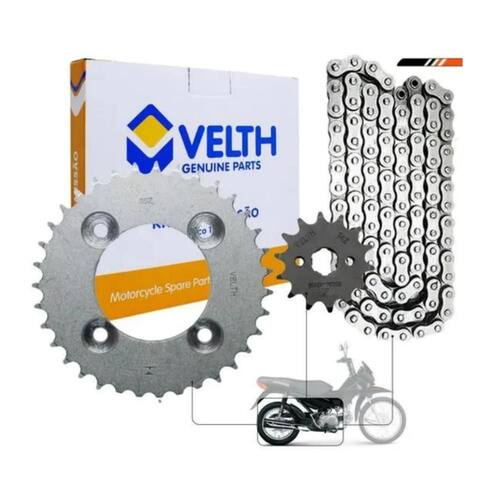 O Kit Relação Velth para Honda Pop 100 2006 a 2015 é produzido em aço 1045 de alta resistência, garantindo máxima durabilidade e desempenho na transmissão da sua moto. Ideal para quem busca confiabilidade e custo-benefício em reposição ou manutenção preventiva. O conjunto completo proporciona engates suaves, menor desgaste e maior vida útil, mesmo em condições severas de uso urbano ou rural. Produto de aplicação precisa e excelente acabamento, fabricado com padrão . Conteúdo do Kit: 1 Coroa em aço 1045 1 Pinhão Aplicação: Honda Pop 100 - Anos: 2006 a 2015