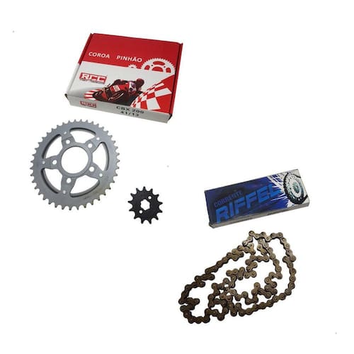 Kit Relação RCC sem retentor CBX 200 Strada ano 93 a 2003 Produto: Kit Transmissão SEM RETENTOR Descrição e aplicação: Honda CBX 200 Strada ano 93 até 2003. Coroa RCC Passe 520 Aço 1045 41 dentes; Pinhão RCC Passe 520 Aço 1045 13 dentes; Corrente Riffel passe 520h X 108 elos sem retentor e fechamento com trava . Peça nova marca RCC e Riffel. Conteúdo da embalagem: 01 Coroa 01 Pinhão 01 Corrente Observação: o produto pode ter alguma variação quando comparado com a imagem. Dimensões da embalagem: Altura: 6cm / Largura: 25cm / Profundidade: 25cm / Peso: 3,4Kg Sobre a empresa: A SF Motos iniciou suas atividades em janeiro de 2007 como concessionária da marca Kasinski, vindo a se destacar como um dos revendedores que mais comercializou motocicletas desta marca no Brasil. Em 2013, veio a grande mudança com a saída da Kasinski do mercado brasileiro, e a empresa se reinventou e passou a ser importador e revendedor no ramo de moto peças multimarcas, tendo o seu principal objetivo atender os clientes que ficaram desassistidos de peças, devido a saída de alguns fabricantes do mercado brasileiro e tendo seu canal principal de vendas o e-commerce. FC03/23 Marca: Rcc E Riffel