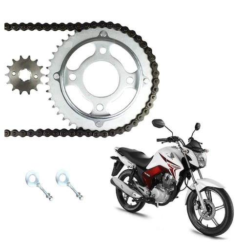 Fotos ilustrativas Produto compatível com a montadora fabricante da motocicleta indicada no Titulo - Descrição - Ficha Técnica do Anuncio - A marca do produto fabricante do produto será enviada de acordo com a marca indicada na ficha técnica/características principais ou a marca indicada na descrição do anuncio no campo marca/fabricante do produto Acompanha Marca/modelo/aplicação: Conforme ficha técnica do anuncio Duvidas utilize o campo de perguntas antes da compra, após a compra utilize o campo de mensagens Atenção aos anuncio que possuem botões para seleção os produtos serão enviados conforme sua seleção no topo do anuncio Recomendamos a instalação em oficina mecânica especializada Itens inclusos: 01 Corrente Com Retentor - 01 Coroa - 01 Pinhão - 02 Esticadores Aplicação: Cg 150 - Titan 150 - Fan 150 - Start 150 - Cargo 150 Para Os Anos: 2004 - 2005 - 2006 - 2007 - 2008 - 2009 - 2010 - 2011 - 2012 - 2013 - 2014 - 2015 Marca Fabricante Produto: Dvsc Medidas: Coroa 43 Dentes - Pinhão 16 Dentes - Corrente 428 x 118 Com Retentor Imagem Meramente Ilustrativas Marca: Não Informado
