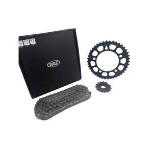 Embalagem: 01 Kit Transmissão Completo. ( Coroa, Pinhão e Corrente )