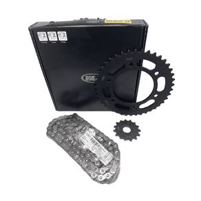 Embalagem: 01 Kit Transmissão Completo. ( Coroa, Pinhão e Corrente )