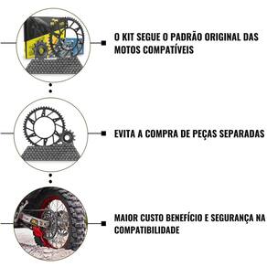 Além de evitar que você perca tempo e dinheiro com peças que não se encaixam perfeitamente entre si, os itens desse kit também possuem o padrão de fábrica das motos compatíveis, garantindo excelente custo-benefício.