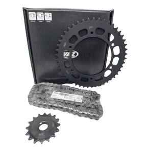 Embalagem: 01 Kit Transmissão Completo. ( Coroa, Pinhão e Corrente )