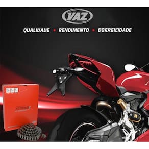 Os kits vaz são de alta performance; a coroa temperada, o pinhão e a corrente que compõem o novo kit vaz linha s de transmissão oferecem alta performance, durabilidade e maior resistência. Disponíveis em variedade de opcionais e acabamentos foram desenvolvidos a partir de modernas tecnologias, equipamentos de última geração, submetidos a tratamentos especiais e com as melhores matérias-primas.