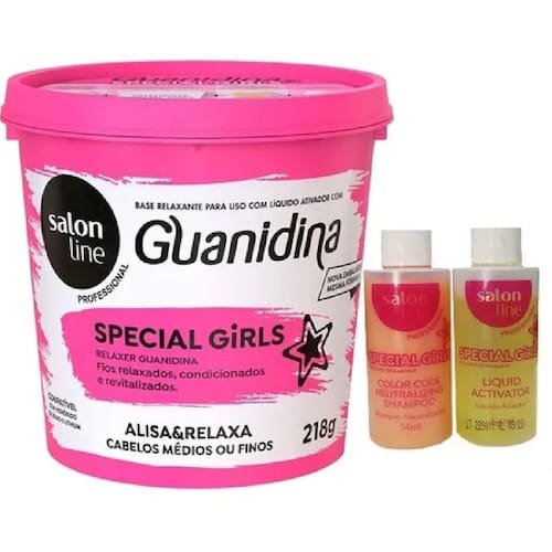 Sua fórmula proporciona um resultado rápido e eficiente, além de conter lanolina, que promove emoliência, hidratação e umectação aos fios. A guanidina é compatível com hidróxido de sódio e lithium. Observação: O produto é incompatível com tioglicolato de amônia. Cuidado com colorações que contenham amônia. Não testado em animais. Promove fios relaxados, condicionados e revitalizados. Cabelos médios ou finos.