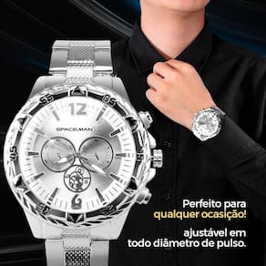 Complete seu visual com o kit Orizom Spaceman, que reúne relógio analógico masculino e colar com a oração do Pai Nosso para uso no dia a dia. O conjunto oferece praticidade e estilo, unindo acessório funcional e peça com significado especial. O relógio prateado conta com estrutura e pulseira em aço inoxidável, leitura fácil e design versátil para ocasiões casuais e sociais, enquanto o colar traz pingente gravado que reforça o apelo simbólico. Acompanha ainda caixa exclusiva Orizom Spaceman X, ideal para guardar o kit e também para presentear em datas especiais. A marca destaca materiais duráveis e acabamento cuidadoso, agregando confiança ao uso cotidiano.