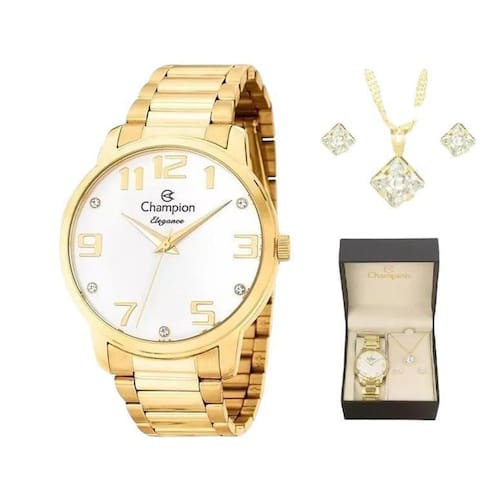 Relógios Com Certificado De De Um Ano Válido Em Todo O Brasil Descriçao Dos Relógios: Modelo Cn25396W Linha Passion Analógicos Movimento Quartz Caixa Em Metal Folhada A Ouro Vidro Cristal Mineral Pulseira Em Aço Inoxidável 50 Metros Resistente A Água 43mm De Diâmetro 4,3 Cm 12mm De Espessura 1,2 Cm Vai Na Embalagem Champion Ean: 7891511346441
